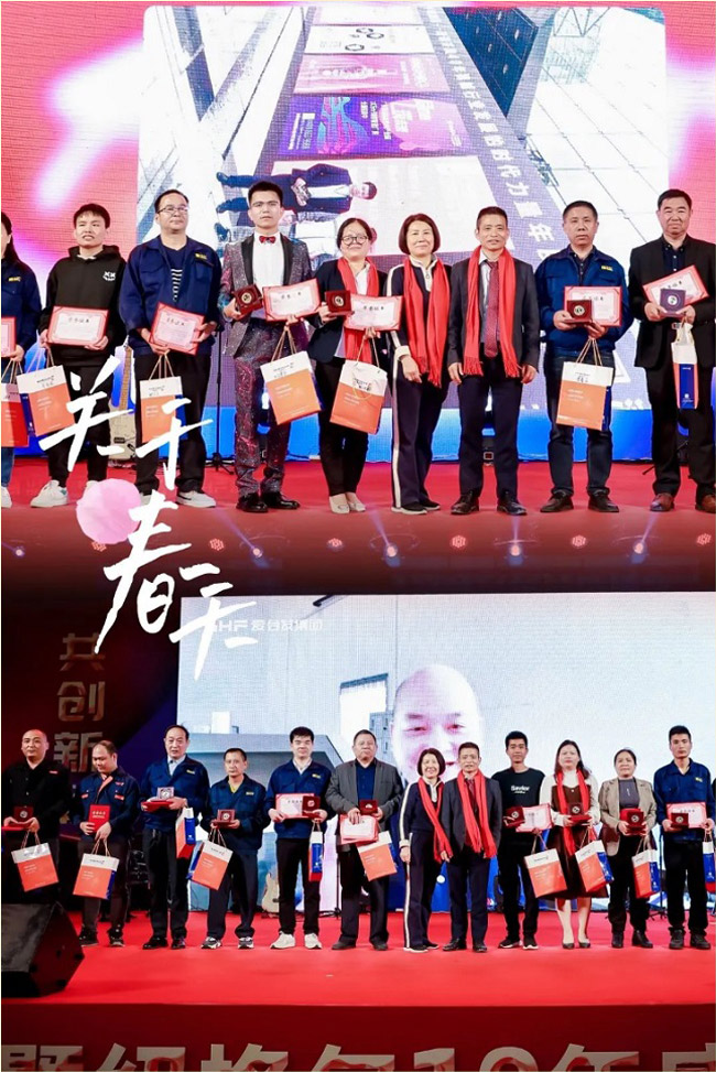 Şirketle on yıldır birlikte çalışan ortaklarımıza ve çalışanlarımıza şükranlarımızı sunmak için görkemli bir ödül töreni düzenlendi. "Üstün Tedarikçi", "Mükemmel Tedarikçi" ve "On Yıl Sadık Çalışan" gibi ödüller sırasıyla takdim edildi ve ödül sahipleri kabul konuşmalarını paylaştı. Fabrika Operasyonları Başkan Yardımcıları Bay Chen Zhongshan ve Bayan Zhang Yejing, "Satış Eliti", "Üstün Çalışan", "Üstün Ekip Lideri" ve "Üstün Yönetici" gibi 2023'ün en iyi performans gösterenlerine konuşmalar yaptı ve ödüller takdim etti.