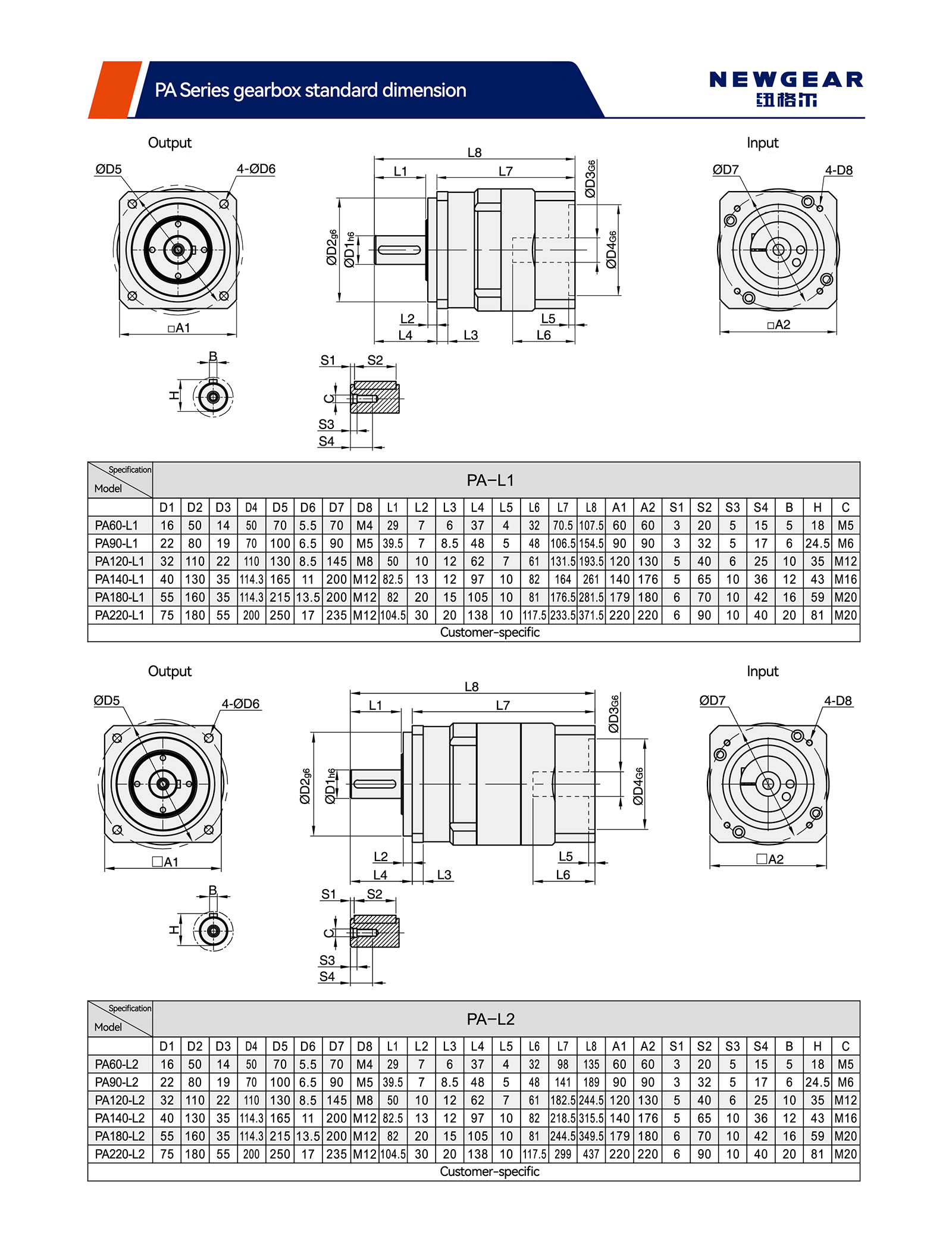 | Teknik Parametreler | Model Serisi | PA60 | PA90 | PA120 | PA140 | PA180 | PA220 | ||