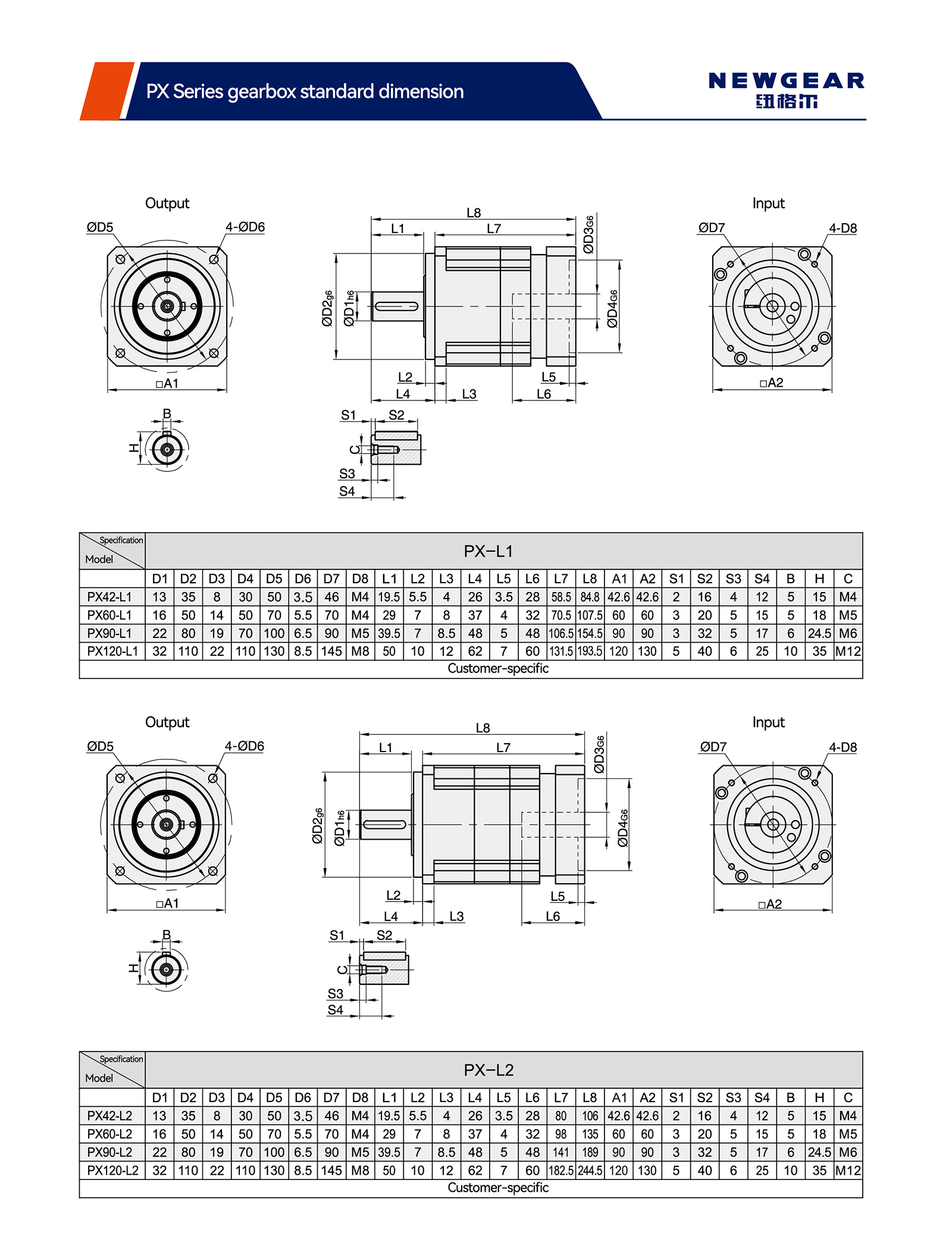 | Teknik Parametreler | Model Serisi | PX42 | PX60 | PX90 | PX120 | ||